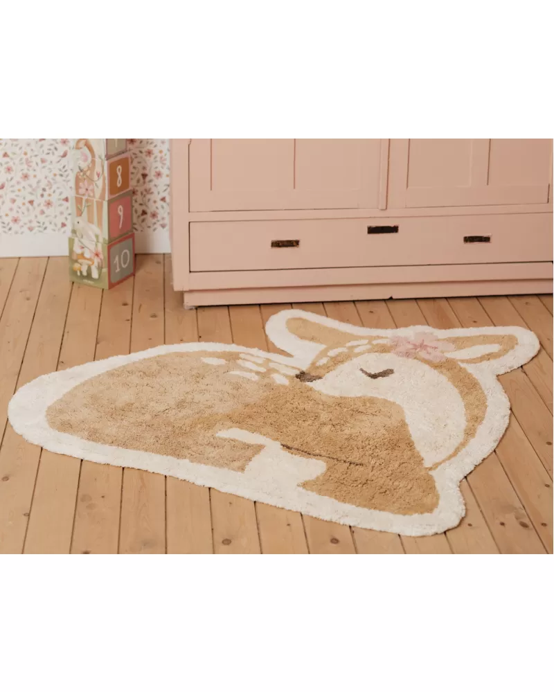 Tento hravý koberec vytvoří v dětském pokoji útulnou atmosféru. Na měkkém koberci v podobě srnky se bude vašemu dítěti krásně sedět a hrát si. Navíc je pod nohama nádherně měkký.