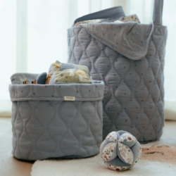 Textilní oboustranný košík s krásným jemným potiskem je vyrobený z pevného bavlněného materiálu. Využijete jej pro přehledné uložení všeho, co potřebujete mít po ruce při každodenní péči o vaše miminko. Košík je zároveň krásným doplňkem na přebalovacím pultu či poličce v dětském pokoji.