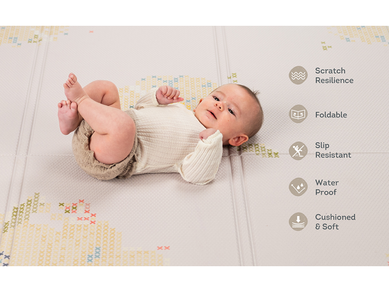 - Měkká a bezpečná – tlumí nárazy, chrání před chladem a tvrdou podlahou – ideální pro první pokusy o lezení a převracení