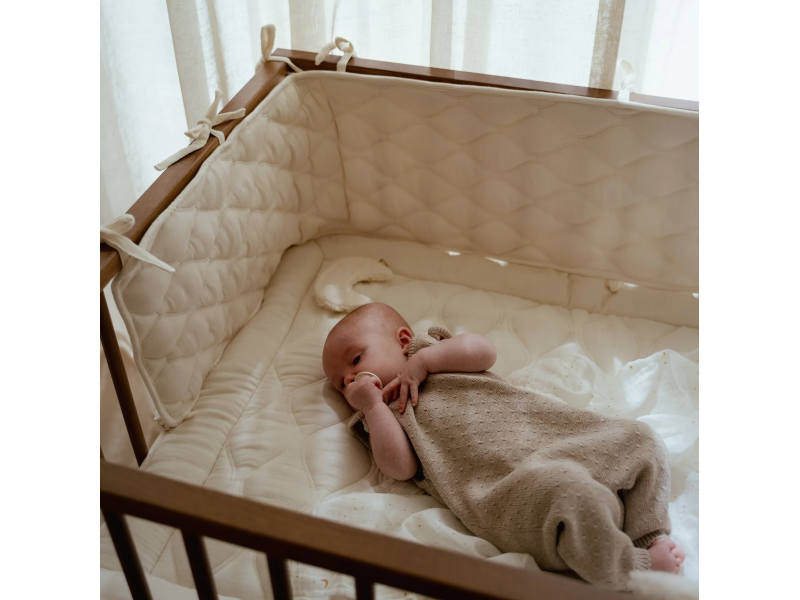 - Bezpečí a pohodlí – chrání před nárazy do bočnic postýlky a poskytuje miminku příjemný pocit bezpečí