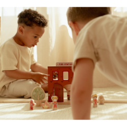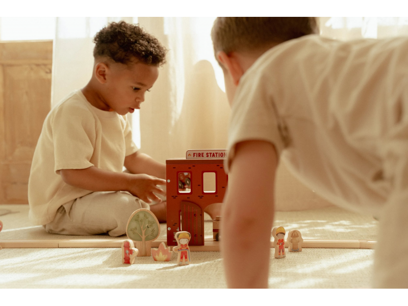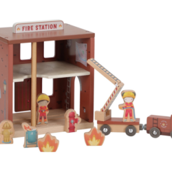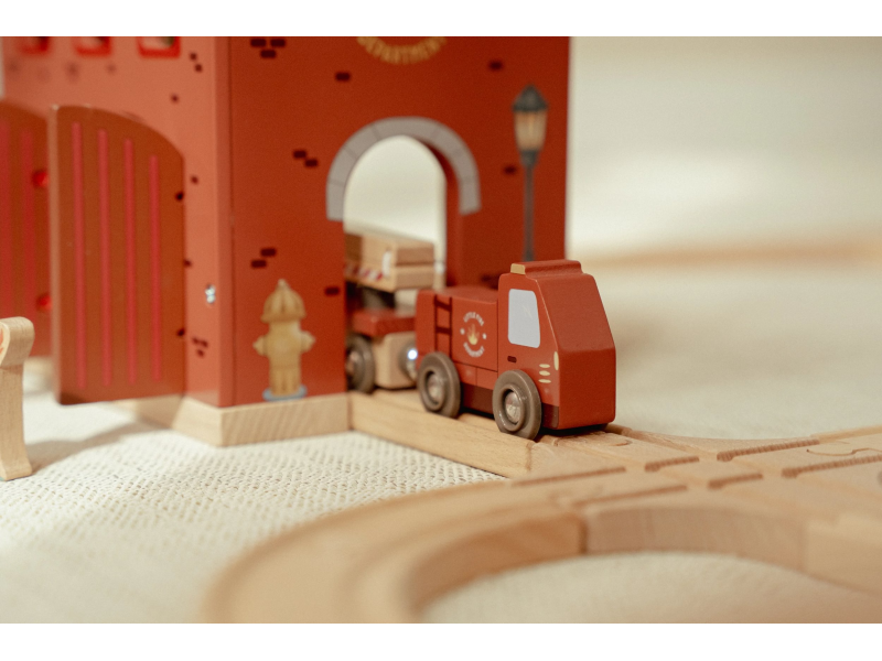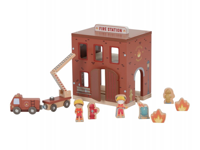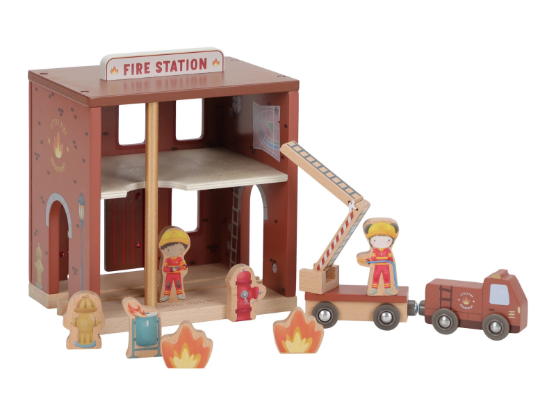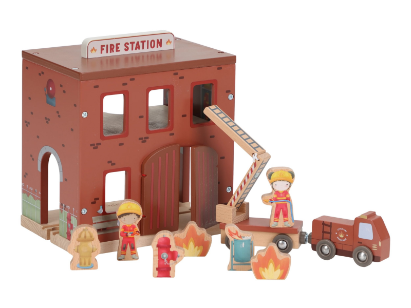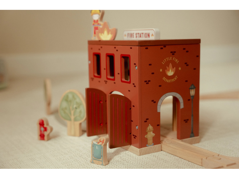 Hasičská stanice s otevíracími dveřmi, figurkami a doplňky pro realistickou záchranu. Skvělá hračka pro malé hasiče.