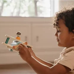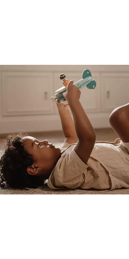 - Letadlo je vyrobeno z kvalitního dřeva s certifikací FSC, která zaručuje šetrnost k přírodě i dlouhou životnost hračky.