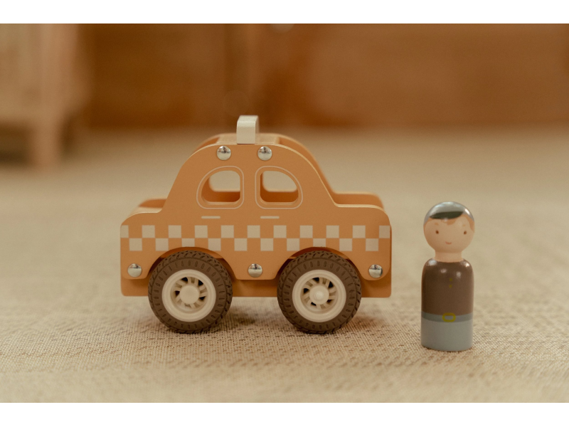 Naskočte a nechte se odvézt! Toto Little dutch taxi auto je připraveno bezpečně dopravit každého cestujícího do cíle. Díky gumovým pneumatikám se hladce pohybuje po podlaze, a sympatický řidič už čeká, až vyrazíte na cestu.