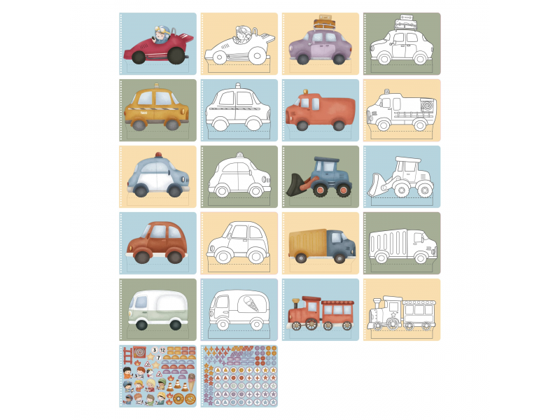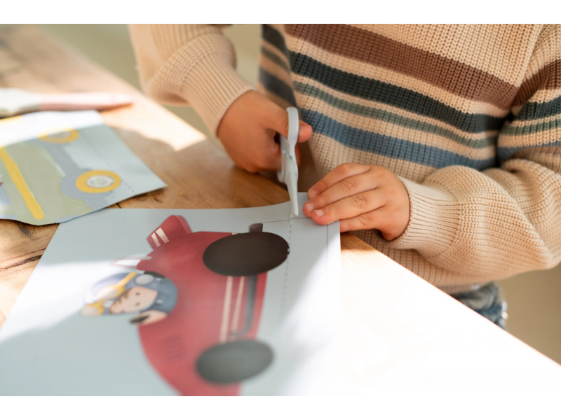 Originální kreativní kniha Little Dutch potěší všechny malé milovníky aut a tvoření. Obsahuje 20 barevných vystřihovacích vozidel, které si děti po vystřihnutí mohou dozdobit a vytvořit si tak vlastní sbírku aut, strojů a dopravních prostředků. Součástí balení jsou bezpečné dětské nůžky, díky nimž mohou děti masky vystřihovat samostatně a bez rizika.