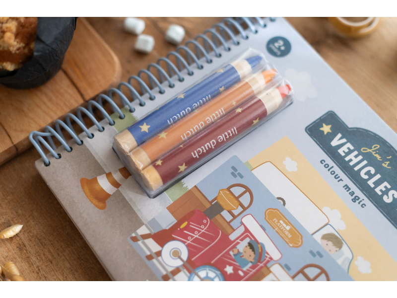 Nechte své dítě objevovat svět barev s těmito kouzelnými omalovánkami Little Dutch. Jemné ilustrace s tématikou dopravních prostředků vybízejí k vybarvování a rozvíjejí dětskou fantazii. Pastelky rozvíjejí jemnou motoriku a díky svému tvaru se snadno drží.