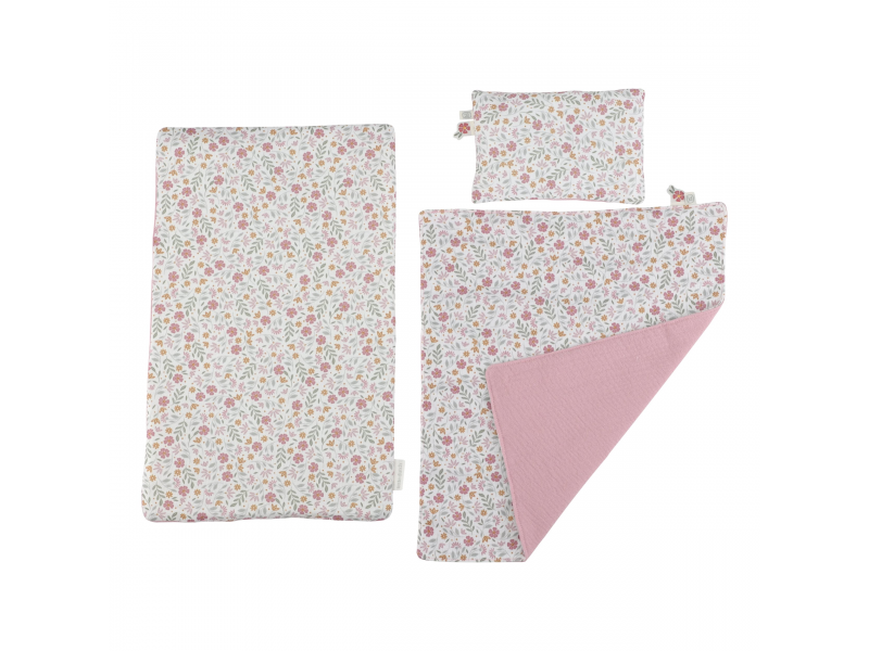 LITTLE DUTCH Postýlka pro panenky dřevěná s peřinkou – PINK