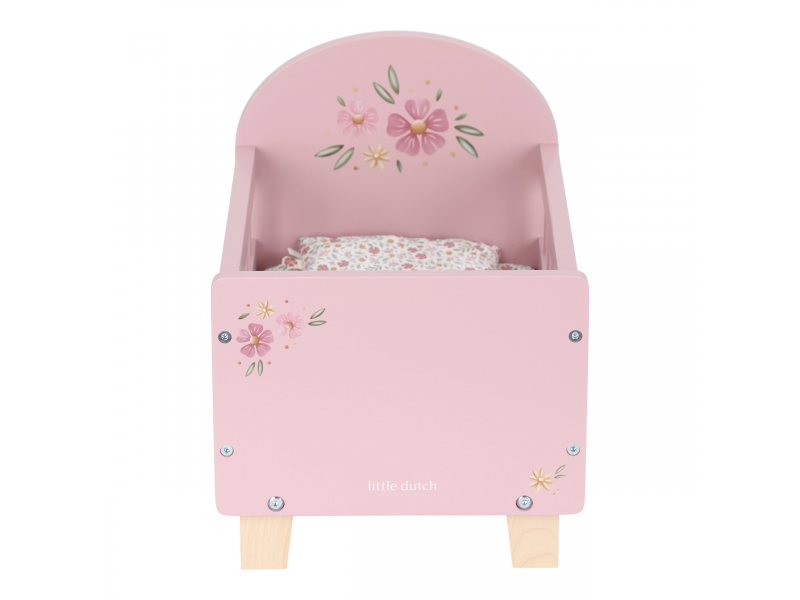 Dřevěná postýlka pro panenky Little Dutch s peřinkou a květinovým designem. Krásná hračka, která podporuje kreativitu a ozdobí každý dětský pokoj.