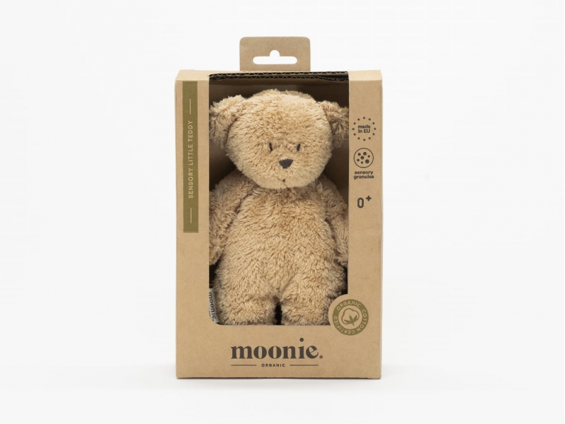 MOONIE Medvídek plyšový Sensory Organic – Cappuccino