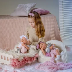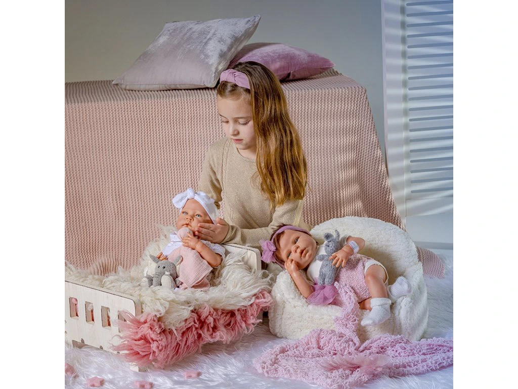 Panenku dodáváme včetně příslušenství : hnízdečko, oblečení, certifikát původu a rodná knížka.