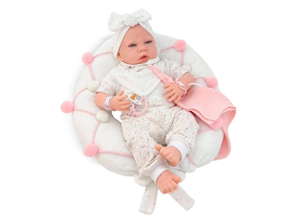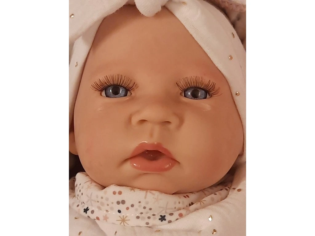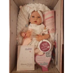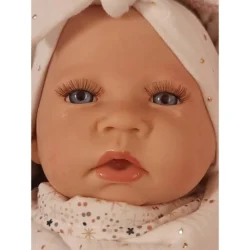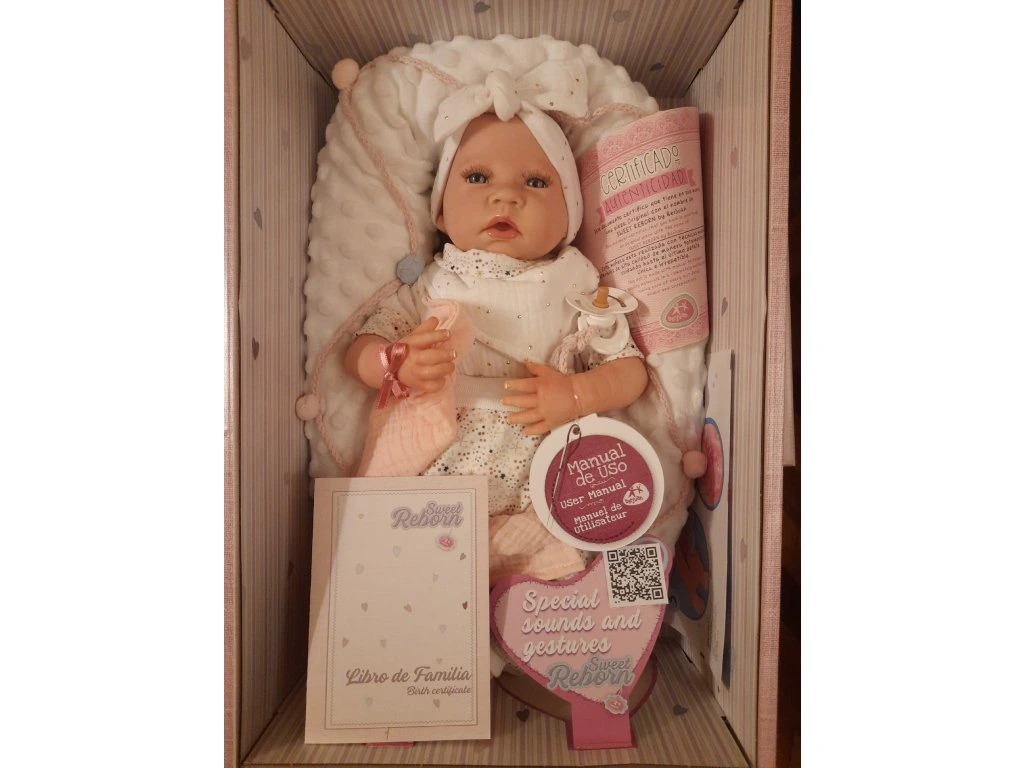 Nádherná realistická panenka z luxusní kolekce Sweet Reborn by Berjuan patří mezi opravdové skvosty mezi panenkami. Panenka má měkké tělo a končetiny z jemného příjemného vinylu. Můžete ji vozit v kočárku, oblékat, uspávat a zapojovat do spousty dalších činností.