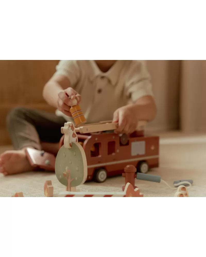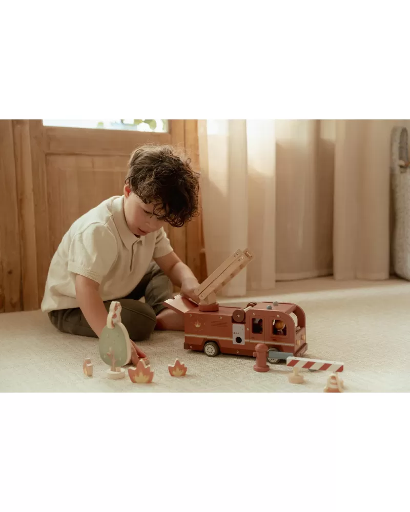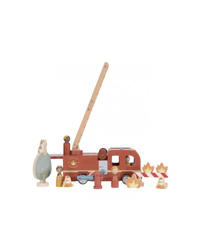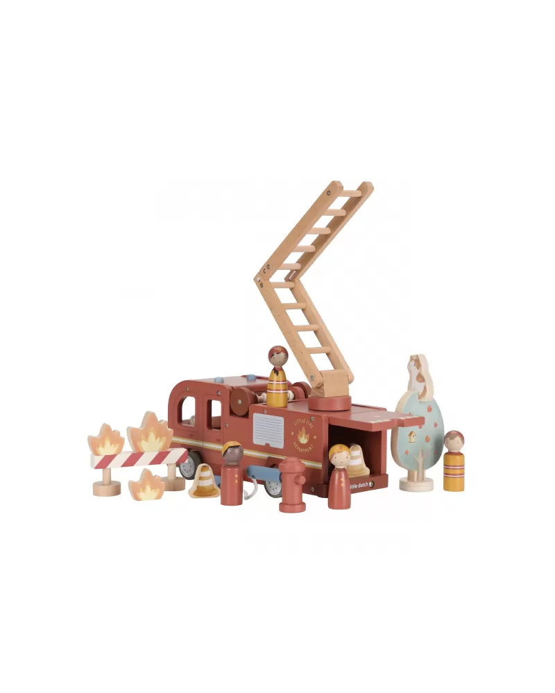 Hasičský náklaďák se čtyřmi hasiči je připraven vyrazit do akce! Někdy je potřeba zachránit kočičku ze stromu, jindy uhasit požár nebo pomoci policii při dopravní nehodě. Pro všechny tyto situace je náklaďák vybaven výsuvným žebříkem a odnímatelnou hadicí, kterou lze připojit k hydrantu nebo přímo k vozu.