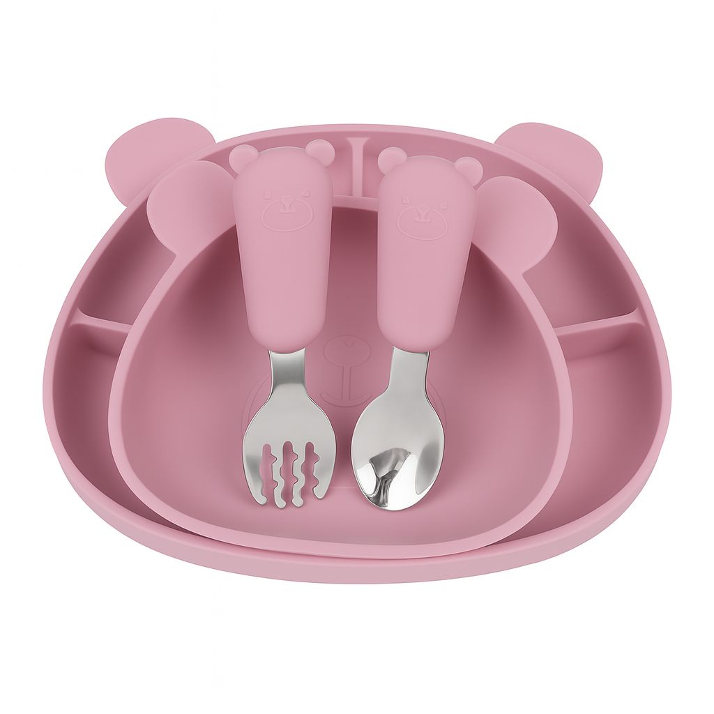 Objevte kouzlo praktického a moderního stolování s MIMIO Silikonovým jídelním setem BEAR – BLUSH. Tento roztomilý set usnadní každodenní jídla vašeho dítěte a promění je v radostný zážitek plný pohody.