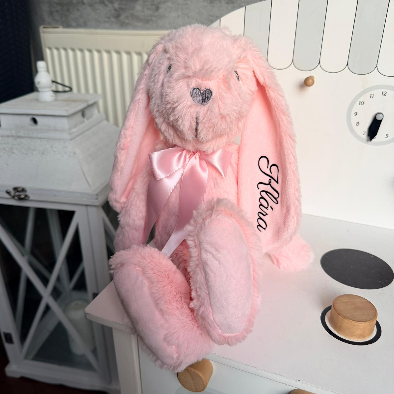 Tento MIMIO Králíček Ollie v růžové barvě má již hotový potisk se jménem KLÁRA a je připravený k okamžitému odeslání.